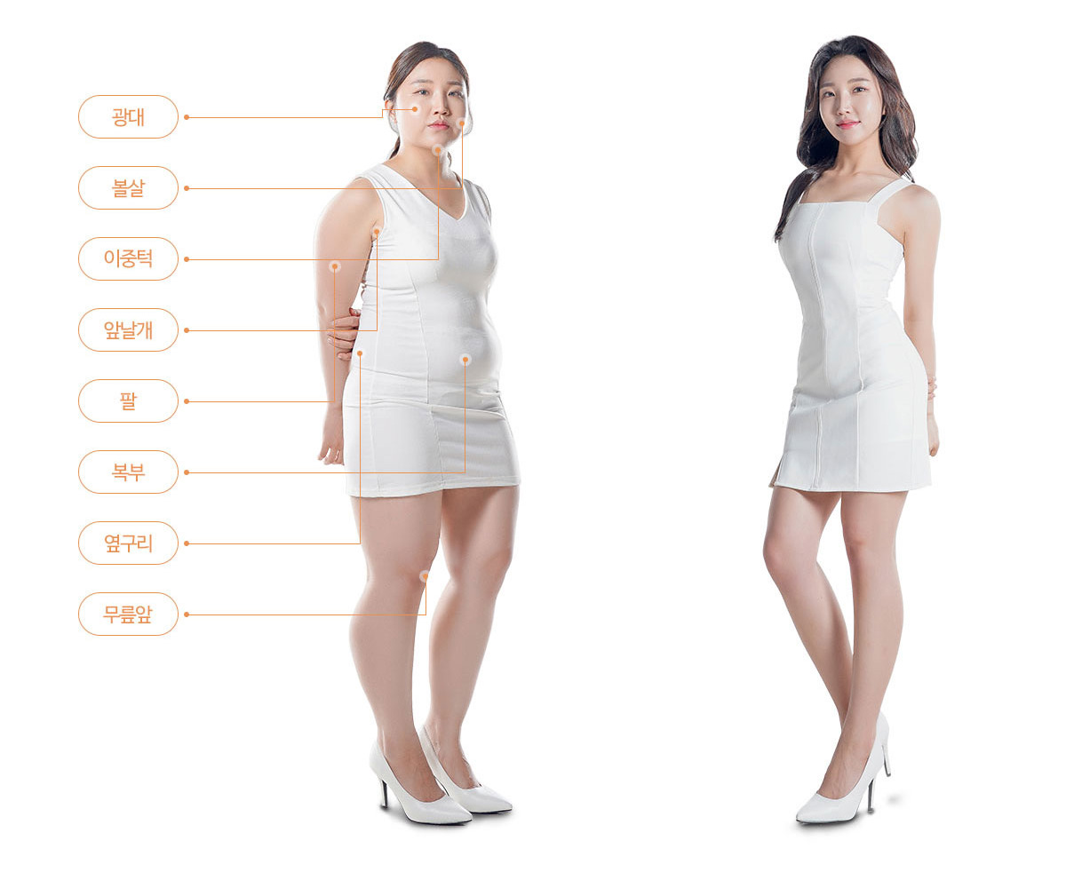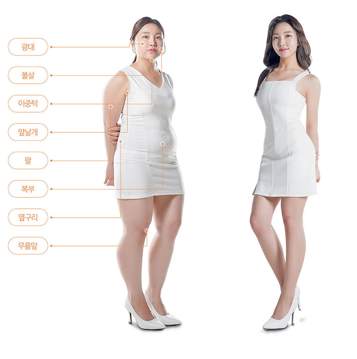 지방 쌓인 곳 어디든, 머리부터 발까지 전신 시술이 가능합니다.